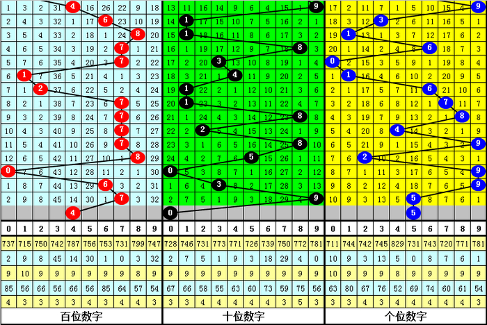 百位分析:上期出现号码7为:质数、大号,在贯穿9期开奖中,百位离别为:质数、小 号:2;质数、大号:7;质数、大号:7;质数、大号:7;质数、大号:7;合数、大号:8;合数、小 号:0;合数、大号:6;质数、大号:7,其中小 号出现时常,合数出号较少,百位本期防范合数、小 号开出。