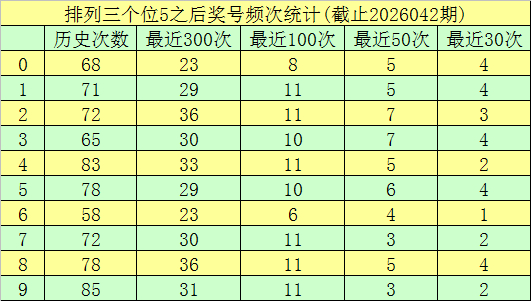 第三位开奖5在最近三次之后,下期落号区别为:3-5-8,奖号出现时:冷号区段、冷号区段、热号区段,本期看好第三位在热号区段出现,展望冷码区段号码不时遗漏。