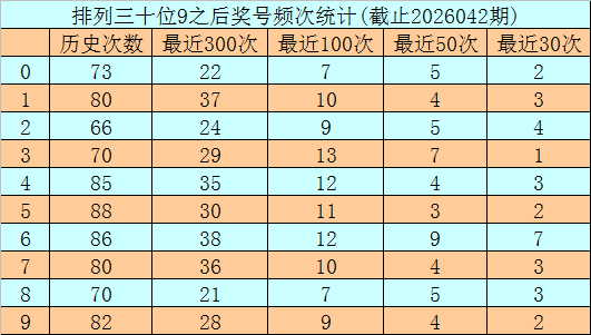 第二位杀号:第二位上期开出奖号为9,该位历史上奖号9开出了781次,最近100依次二位奖号出现9后,下期落号0-9次数从高到低区别为:号码3→13次,4、6→12次,5→11次,1、7→10次,2、9→9次,0、8→7次。